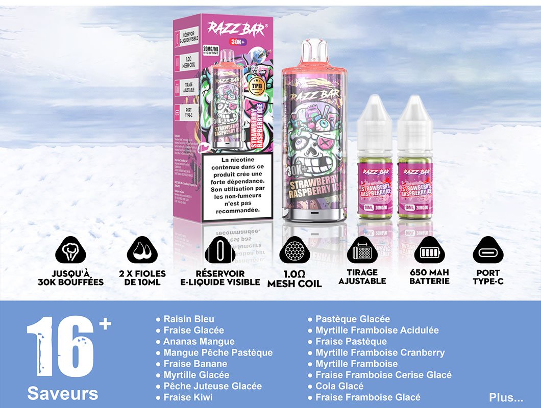 Introducing the RAZZ BAR 30000+, a premium vaping device designed to awaken your senses with every satisfying draw. Engineered for lasting enjoyment, it delivers up to 30,000 puffs of pure, consistent satisfaction—ideal for those seeking refreshing and invigorating sessions with a wide array of memorable and expertly crafted flavors.